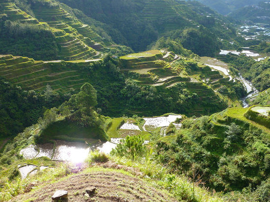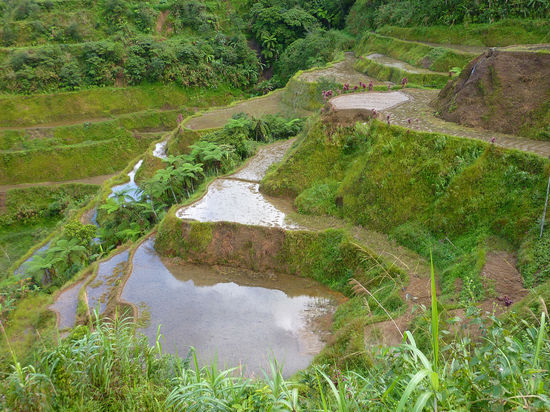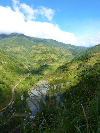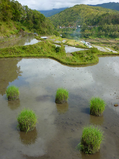 Von Banaue aus haben wir dann eine Tagestour nach Hapao gemacht, da unser Guide meinte, dass sei grad schoener, weil die Felder schon gereinigt sind. Es ist auch wirklich ein Traum. Dort haben wir dann einen 4-stuendigen Hike quer durch die Reisterasen gemacht. Immer schoen aufpassen, dass man nicht in die falsche Richtung faellt, sonst gehts auch mal schnell 3 Meter abwaerts
