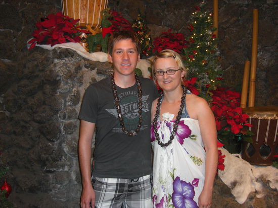Am 6.12. veranstaltete das Hotel eine Abschiedszeremonie mit Lei-Uebergabe, inklusive Musik-Staendchen. Bevor wir uns dann auf den Weg zum Flughafen machten, genossen wir nochmals den schoenen Strand. Und die Wellen waren auch nicht mehr so hoch, so dass auch Sandra ins Wasser konnte.