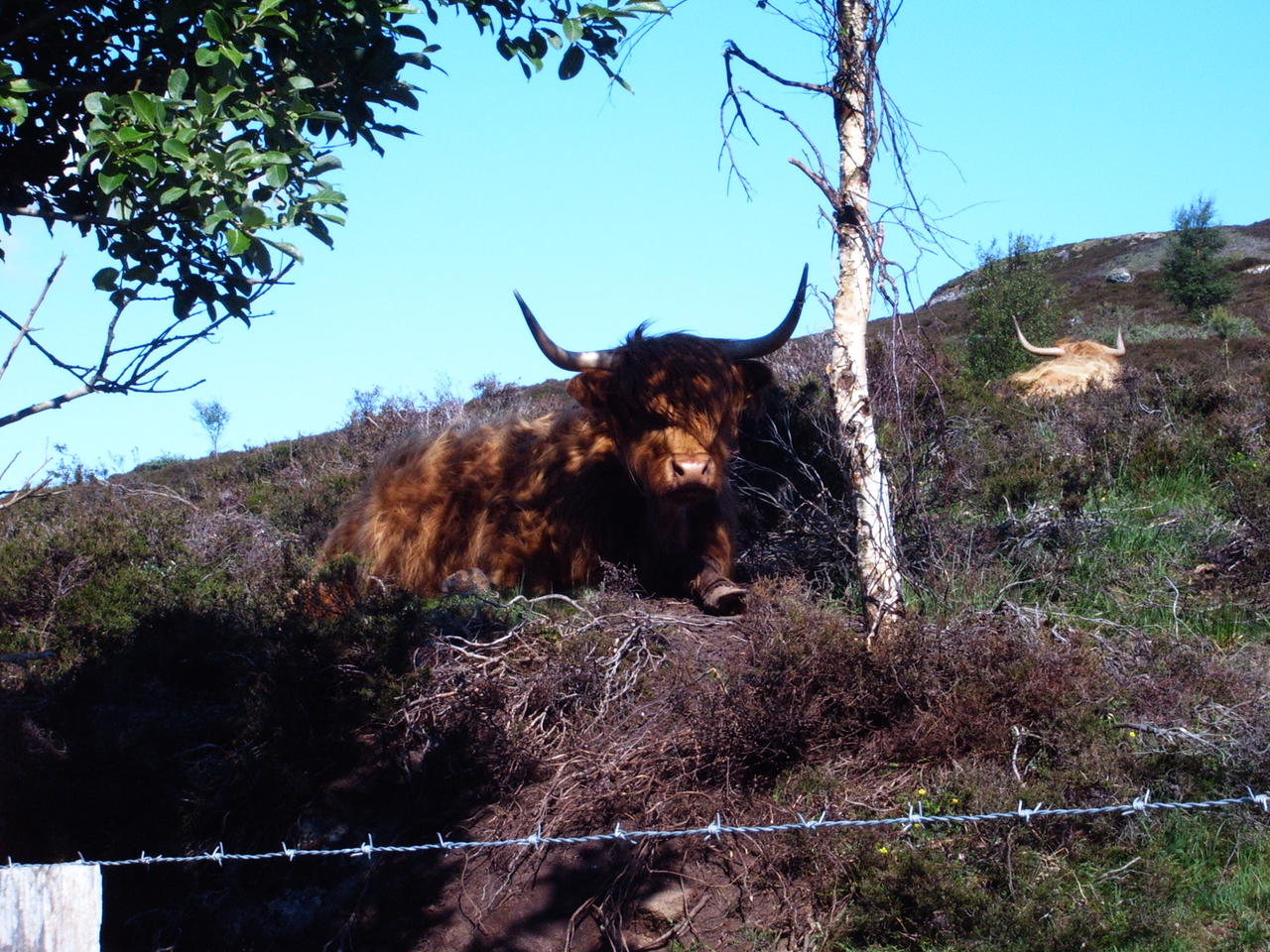 Auf dem Rückweg nach Fort Augustus hielten wir Ausschau nach Hochlandrindern und wurden (endlich) fündig ,in einem kleinen Ort namens "Croachy" standen sie fast am Wegesrand ,nachdem wir uns vorher tagelang die Hälse verrenkt hatten, um welche zu sehen .