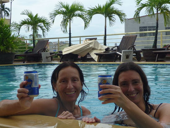 Nach dem vielen Sightseeing goennten wir uns ein Poolbierchen und hielten uns an die Devise "Don't drink and dive but drink and duempel".