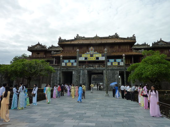 Der Flug nach Hue war nicht so angenehm. Es war offenbar gerade Lande-Happy Hour: 2 Landungen zum Preis von einer. Nach der ersten Landung hoben wir naemlich nochmal ab und ditschten dann endgueltig auf...
