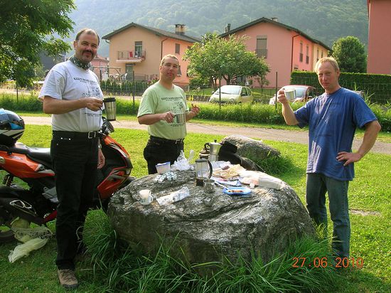 Domodossola wurde passiert. Es ging weiter Richtung Lago di Orta. Die Strecke war äußerst schlecht ausgeschildert, zumindest dann, wenn auf Kraftfahrtstrassen verzichtet werden musste. Obwohl die Jungs stundenlang im Sattel saßen, wurde in Nord-Süd Richtung recht wenig Boden gut gemacht.