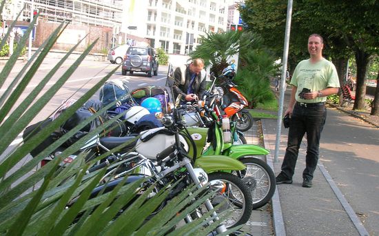 Es war noch recht kühl, alles lief prima. In Bellinzona wurde erst mal getankt. Man konnte fast schon den Lago Maggiore riechen, also weiter schnurstracks nach Locarno. Direkt am See wurde eine Rast eingelegt. Alles war palmengesäumt, eine Gelateria an der anderen, mediterrane Eindrücke waren unverkennbar.
