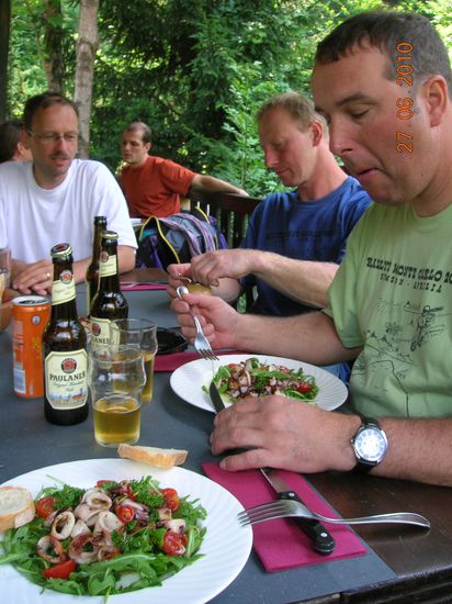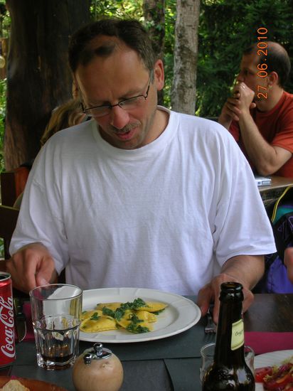 Pizzen wurden geordert und Rainer bekam endlich das langersehnte Stück Fleisch.