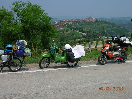 Nach einem Schmalspur Frühstück, ging es weiter an der Küste bis Imperia. Von nun an schnurstracks gen Norden über die Seealpen in Richtung Ceva bzw. Monta. Das Piemonte bescherte mit seinen Kammstraßen immer wieder eine herrliche Aussicht über die sanfte Hügellandschaft, ähnlich der Toscana.