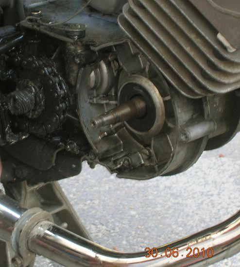 Rainer schnappte das Handy und rief Peter Strauch, Simson Händler in Stuttgart, an. Er hatte einige Tipps parat, unter Anderem bekräftigte er Rainers Verdacht mit den Wellendichtringen. Da inzwischen alles Andere ausgeschlossen werden konnte, entschloss man sich dann doch für die große Nummer mit den Wellendichtringen. Zuerst wurde die Zündungsseite geöffnet, der Dichtring sah wohl nicht gerade neu aus, befand sich aber noch vollständig in seinem Sitz.