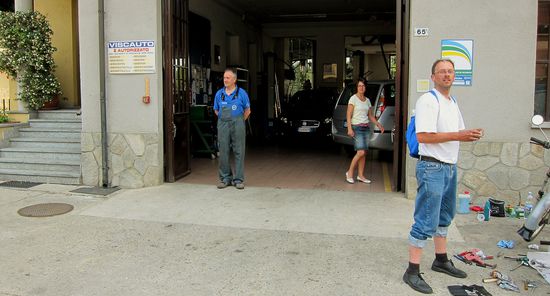 Bereits um 6:00 Uhr Früh zentrierte Rainer das Vorderrad an seiner Schwalbe, mit Erfolg. Der Seitenschlag war fast vollständig verschwunden, well done.
