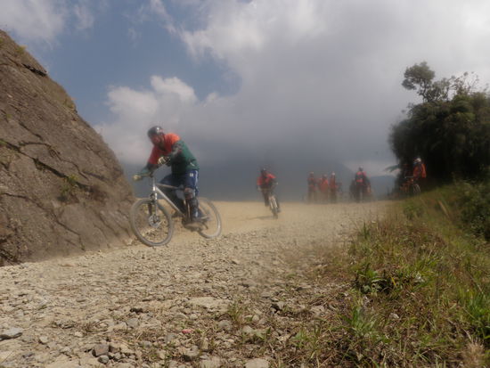 Mit dem Rad startet man auf 4700m und faehrt dann 65 km lang sehr kurvig den Berg runter bis auf 1200m Hoehe. Das Ganze dauert etwa 3 1/2 Stunden. Wir hatten super viel Spass. Die Guides waren gut und haben uns super auf die strecke vorbereitet, die Ausruestung war sicher mit kompletter Bekleidung, Helmen, Knie- und Ellenbogenschuetzern. Mit dem Rad braucht man auf der Strasse auch laengst nicht so viel Platz wie mit Bussen und kommt deshalb nicht so nah an den Abgrund heran.