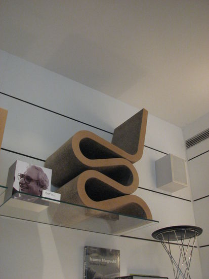 Pünktlich beginnt die Führung mit nur 6 Personen und die Dame erklärt uns, dass Vitra als Ladenausbauer begonnen hat, der nachher wegen des Saisonsgeschäftes begann auch Stühle zu bauen. Nach Eintritt eines Familienmitgliedes - promovierter Soziologe - in die Firma, entwickelte dieser nach einem Firmenbrand mit z.T. unbekannten Architekten einen Wiederaufbauplan. Er vergab für die verschiedenen Gebäude Aufträge ohne Ausschreibung und bot so jungen Architekten die Chance ihre Phantasien auszuleben. Der Museumsbau ist solch einer, der nirgendwo sinnerklärende Formen erkennen läßt, die erst im Innern erkennen lassen, dass durch ihre Struktur die Lichtverhältnisse für Ausstellungsstücke geradezu ideal sind. Ausserdem bilden sich durch die notwendigen Quermauern im oberen Teil der Säle hinreichend Flächen, auf die Beamer gerichtet sind und ihre Multimediapräsentation vorführen.