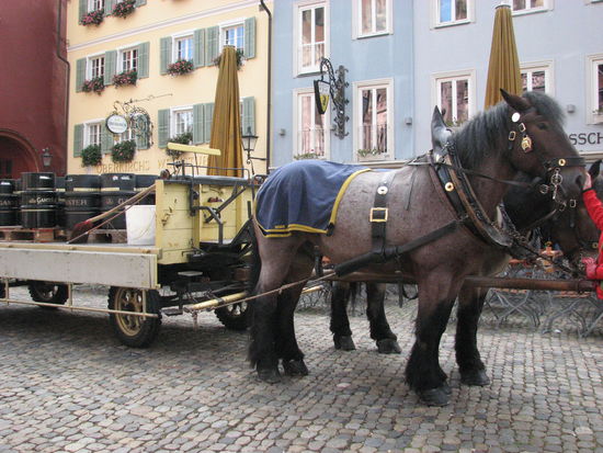Ach ja, essen mußten wir ja auch noch was - im Ganterbräu gibt es Wildschwein - die einheimische Brauerei liefert doch tatsächlich das Bier in Fässern per Kaltblut-Pferde-Wagen.