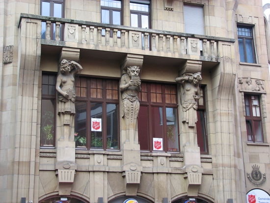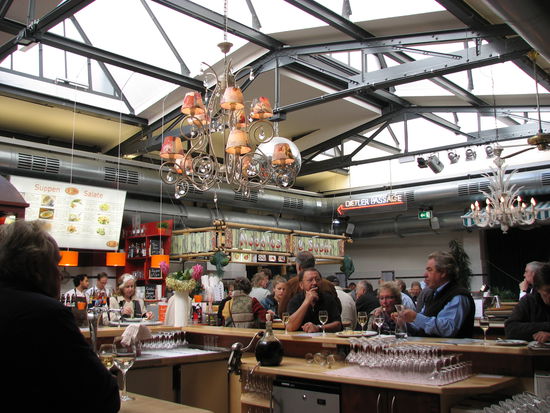 Die breite Straße - heute Fußgängerzone mit Straßenbahn - nannte man damals die Große Gass. Die in einer Nebenstrasse gelegene Markthalle birgt zahlreiche Möglichkeiten 'multikultural' zu speisen, wenn auch recht laut und meist an Stehtischen.