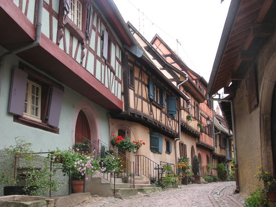 Inzwischen ist es schon fast 12.00 Uhr und wenn wir heute essen gehen wollen, müssen wir uns schon beeilen, da wir ja in Frankreich sind. Die wenigen Kilometer bis Eguisheim schaffen wir ja noch und parken ausserhalb des Ortes - der zentrale Ortsparkplatz für Touristen ist natürlich inzwischen ein Bezahlparkplatz.