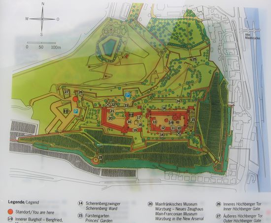 Vom Burghof aus ist der 1300 Quadratmeter große Fürstengarten zugänglich, der 1937/38 nach Plänen des frühen 18. Jahrhunderts wiederhergestellt wurde. Von dort ist der Blick auf Würzburg fantastisch.