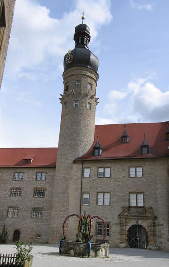 Im 16. Jahrhundert noch Wasserburg entwickelte sich Weikersheim unter Graf Wolfgang II zum Renaissanceschloß.