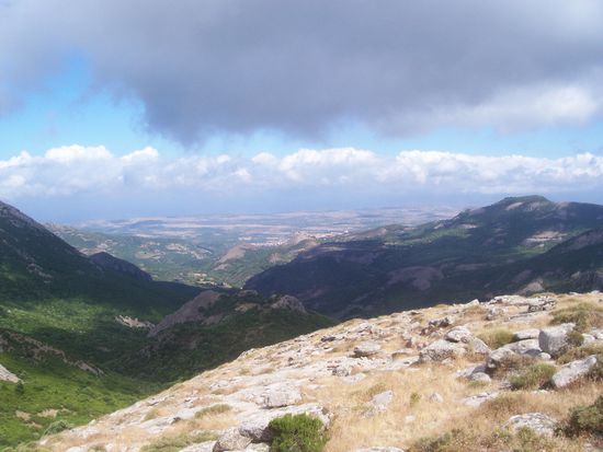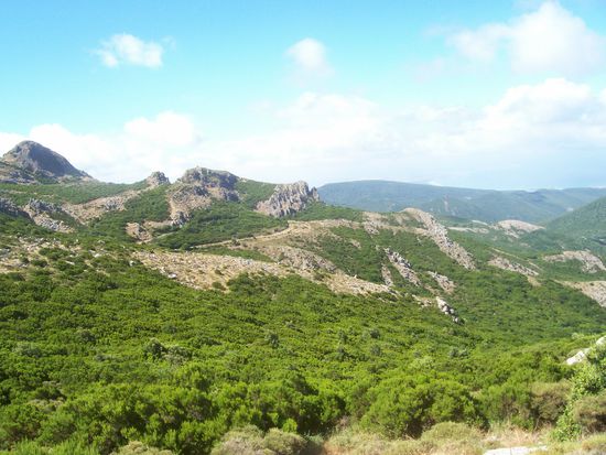 Wir lassen die Sinis-Halbinsel hinter uns und fahren in die Berge, nach Cuglieri. Von da an sind es noch nicht ganz 10km in östlicher Richtung zu einem Schild, dass die Sendeanlagen des Radiosendern RAI ankündigt. Weitere 2,5km über eine überraschend ordentliche Straße weiter, dann sind wir oben, parken den Wagen direkt unter der höchsten Sendeanlage und machen uns, nach einem kurzen Plausch mit einem Typen, der da oben scheinbar die Anlage bewacht, auf. Die Orientierung fällt hier extrem leicht, die Wanderung führt ein Mal um den Monte Ferru herum, es gibt so gut wie keine steilen Auf- und Abstiege und die Ausblicke sind auch nicht zu verachten...