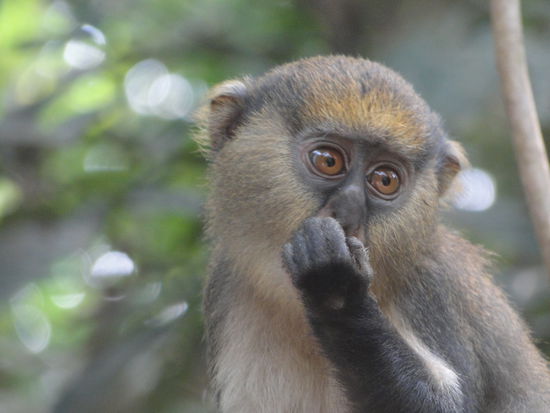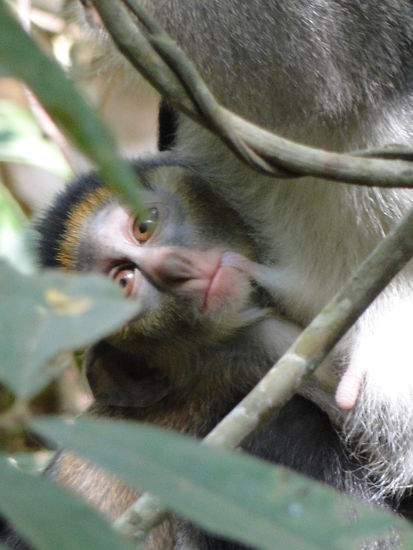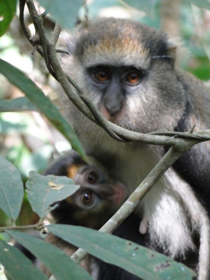 einen tag später besuchten wir die boabeng fiema monkey sanctory. freilebende affen auf einer walking-safari auskundschaften. einfach wunderbar und jeden penny wert. die affen waren ziemlich interessiert an uns, was uns das bestaunen und fotographieren vereinfachte...
