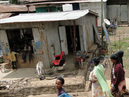 harar kann aber auch ziemlich schönes bieten. so besitzt harar ein ziemlich schönen, urafrikanischen markt. man kriegt zwar keine craft-ware, da touris hier praktisch nicht vorhanden sind. man kriegt aber essen und kleider oder was man sonst noch für den alltag braucht. die restaurants und bars sind ziemlich gemütlich, man findet sogar eine schmucke eisdiele. das essen ist noch günstiger als im süden, wir fanden eine bar, in welcher man für 3 birr (16 birr=1 us dollar) ein draft-bier kriegt. lecker! in einem restaurant erlebten wir dennoch eine ungemütliche situation. der kellner vergass die essbestellung eines australischen päärchen und wurde darauf fristlos gefeuert.