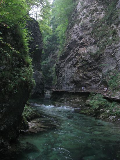 Danach sind wir zur Vintgar Schlucht oder besser Vintgar Klamm gefahren. Man muß 4(!)Euro Eintritt bezahlen und kann dann über Holzstege und Brücken durch die Klamm spazieren.