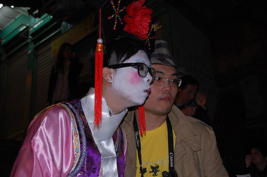 Später am Abend dann sind wir, nachdem wir kurz im Hotel waren, wieder rüber und wir wollten nach Lan Kwai Fong. Das ist das Ausgehviertel hier in Hongkong. Und es war ja Halloween... Aber so dachten nicht nur wir sondern wohl zehntausende Andere auch. Es war kein Durchkommen und ein kilometerlanges!!!! Schlangestehen. Das haben wir uns dann geschenkt, haben uns aber strategisch Positioniert und haben ein paar tolle Fotos gemacht. Aber seht selbst. Vielleicht ist da ja die ein oder andere Idee für Fasching dabei....