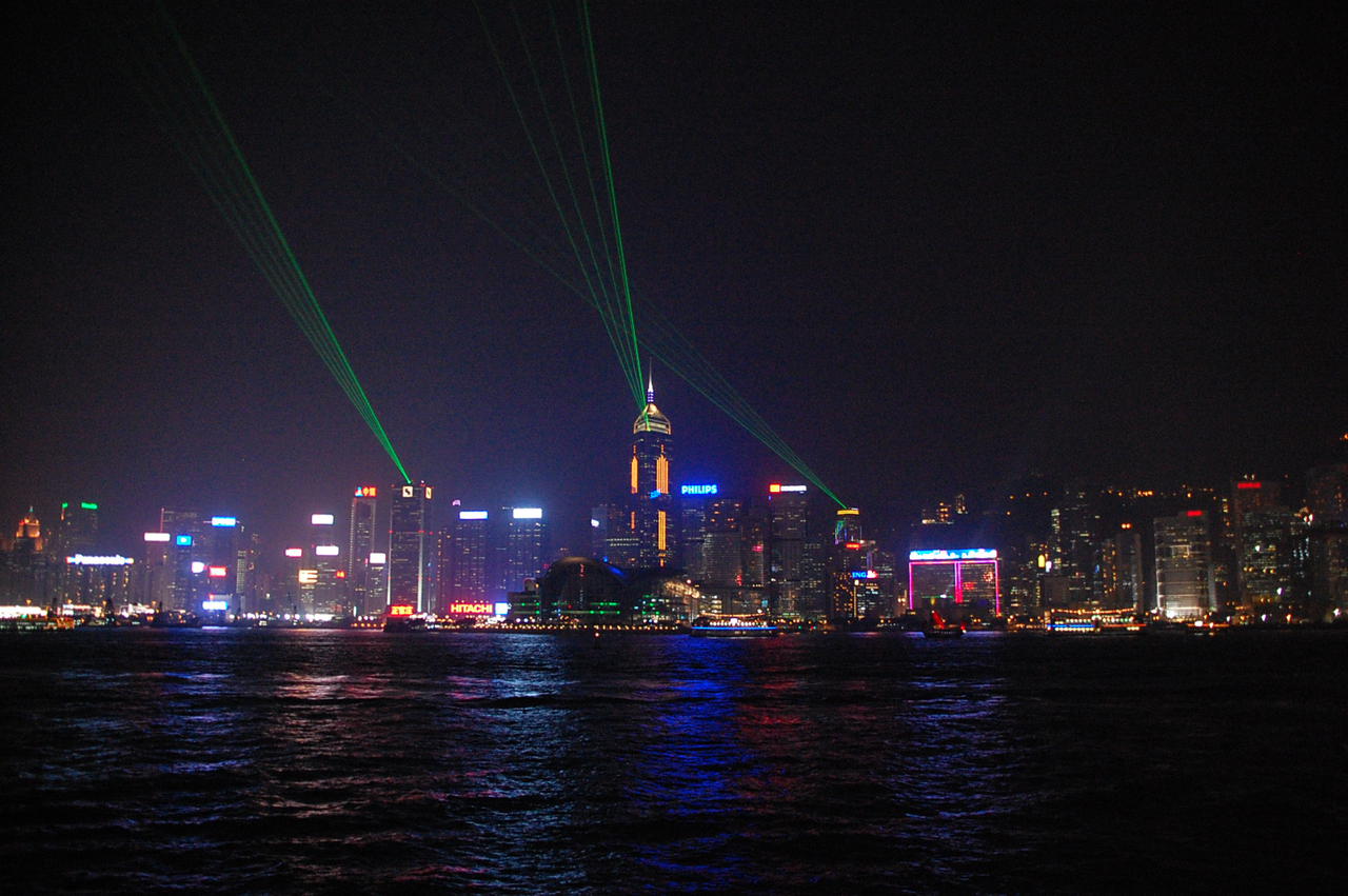 Im Anschluss sind wir dann zur Symphony of lights auf die Kowloon-Seite. Auf der Hongkong-Seite die Hochhäuser veranstalten ne Light- und Lasershow. Toll!!!!