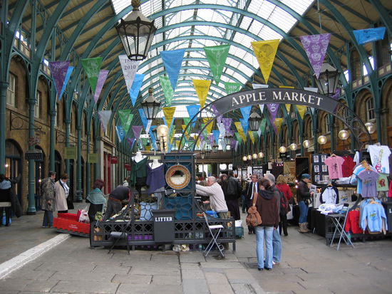 Auch das Viertel um den Covent-Garden-Market hat sich sehr verändert - der große Platz ist z.T. auch bebaut worden. Und auf dem Markt haben Antiquitäten weniger Gewicht erhalten. Trotzdem ist er geschäftig -