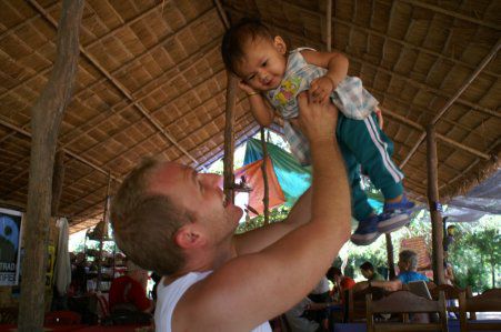 Nach einer weiteren Hitzepause ging es auch schon wieder los, diesmal zurück in Richtung Don Det. Leider war es dem einbeschuhen Holger nicht möglich, bis an die effektive Südspitze zu gehen. Der Sand war definitiv zu heiss. Memmenhaftes Wesen dieser Typ...