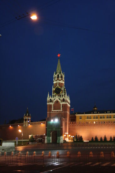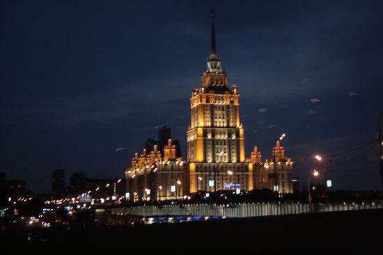 Wir sehen Moskau bei Nacht aus unserem sicheren Bus, der uns zum Bahnhof fährt, damit wir den Zug "Roter Pfeil" nach St. Petersburg um 23.55 Uhr besteigen können.