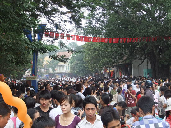 Es herrscht ein Mordsbetrieb und Gedraenge, die Strassen sind ueberfuellt mit vietnamesischen Touristen aus dem ganzen Land. Uebernachtungsmoeglichkeiten in der City finden sich keine mehr, alles ausgebucht. Dass ich ueberhaupt etwas bekommen habe, ist nur der Tatsache zu verdanken, dass ich meine Buchung schon vor einer Woche, noch vor dem Sapa-Trip, getaetigt habe. Da gab es sogar noch annehmbare Preise gegen Hinterlegung einer kleinen Anzahlung.