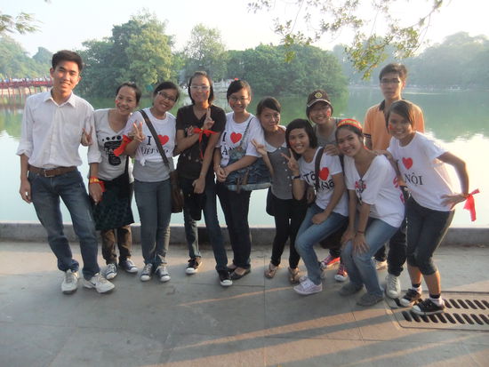 Rund um den See in der Altstadt ist der Teufel los. Von der Schildkroetenpagode oder der Parkanlage rund um den See ist vor lauter Menschen nichts mehr zu sehen. Ein riesiges Gedraenge und geboten wird eigentlich nichts, ausser hin und wieder den paar Auftritten auf den Buehnen um den Hoan Kiem Lake herum.