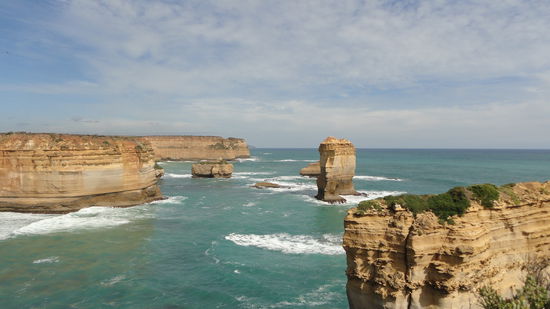 "Die 12 Apostel" Frueher gab es 14 Felsen, jetzt stehen davon nur noch 10. Durch die Errosion brechen leider immer wieder welche ab und stuerzen in die Fluten.
