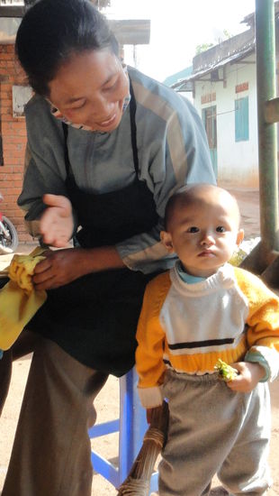 In einem der Bergdoerfer. Hier koennen nur 20 % der Einwohner vietnamesisch. Das Bergvolk seine eigene Sprache hat, die anscheinend total anders ist als vietnamesisch.