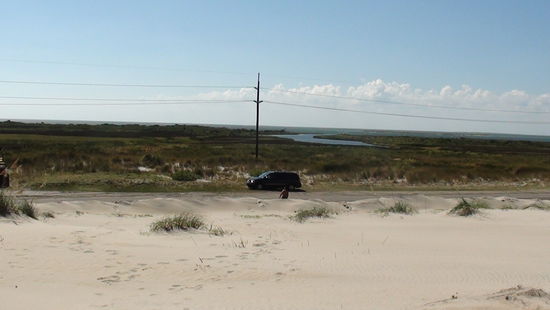 Unser Navi führte uns auf der Küstenzunge angefangen von Albemare Sound, den Kill Devil Hills, Roanoce Sound und Pamlico Sound direkt nach Hatteras Island. Auf beiden Seiten unseres Dodge den tief blauen Ozean und die nahezu unendlich weite Sicht an unseren Fenstern vorbei rauschend, ließen wir uns den Fahrtwind durch die Haare streichen und genossen die fantastische Aussicht.