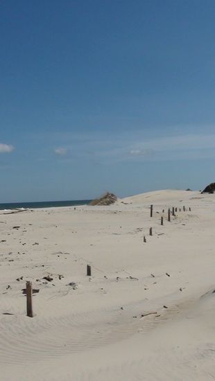 Plötzlich nach einer meilenlangen Brücke waren links und rechts nur noch Dünen, wo war das Meer plötzlich hin!? Durch unsere Neugier getrieben hielten wir am Straßenrand an und liefen die riesigen Sanddünen hinauf...