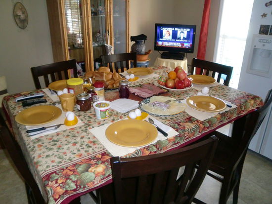 Renate und Claude zauberten dann wieder einmal ein schmackhaftes Abendessen. Liebevoll 'Anthony Sandwich' genannt. Zu diesem Festmahl versammelte sich dann auch Cousine Sandy mit Familie. Es war ein Full House und endete mit einem fröhlichen Zusammensein. Natrlich spannten unsere Hosen auf ein neues nach diesem Abendessen, aber es fühlte sich verdient und irgendwie wohltuend an.