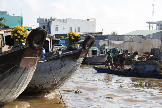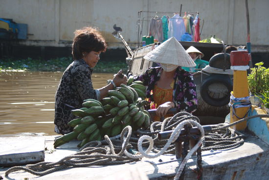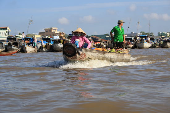 Ein weiteres Highlight der Stadt sind die schwimmenden Märkte. Auf dem Mekong versammeln sich Tag für Tag dutzende kleine und größere Boote/Schiffe um Waren zu verkaufen und anzukaufen. Unser Hotel wollte uns dafür eine Tour aufschwatzen. Danke, wir hatten kein Interesse auf einem großen Boot mit 40 weiteren zu laden. Wir wollte ein kleines. Auch dafür gab es ein Angebot aber eindeutig überteuert. Man bekomme es nicht günstiger hin. Denkste. Wir sind mit dem Taxi hingefahren, hatten uns einen Einheimischen geschnappt und sind mit einen kleinen Boot 2 Stunden durch die Händler gefahren. Und hatten einen Gesamtpreis von 5,-€ für jeden statt der 28,-US$ für jeden. Nach der 4. Nacht verließen wir Can Tho und machten uns auf den Weg zur Phu Quoc Insel.