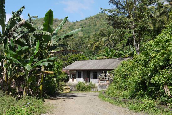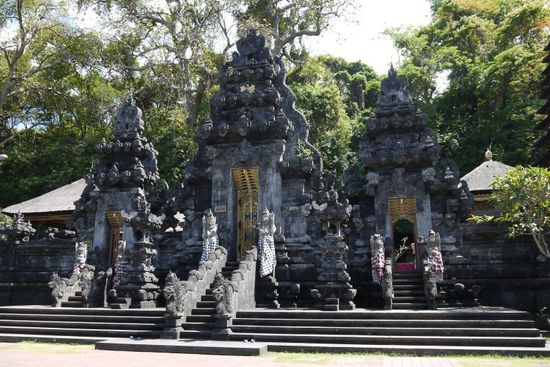 Nachdem wir das Dorf besichtigt hatten, sind wir zur Fledermaushöhle Goa Lawah gefahren. Hier grenzt ein Tempel direkt an eine Fledermaushöhle.