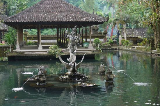 Als wir in Ubud im Hotel Pertiwi angekommen sind, hat es mal wieder in Strömen geregnet, so dass wir leider nicht viel von der Stadt sehen konnten. Da es erst so gegen 19 Uhr aufgehört hat, konnten wir nur noch im Dunkeln bummeln gehen. Das was wir gesehen haben, gefällt uns sehr gut und wir sind wirklich traurig, dass wir hier nicht noch eine Nacht länger verbringen können.
