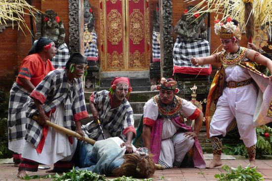 Nach der kurzen Kaffeepause sind wir dann zu der Tanzvorführung gefahren. Der Barongtanz wurde ursprünglich bei Tempelfesten aufgeführt und stellt dar, dass Gut und Böse im Gleichgewicht sind. Wir haben zu Beginn eine Beschreibung bekommen, um den Tanz besser zu verstehen. Ich fand den Tanz - vor allem die Kostüme - total beeindruckend und faszinierend. Das sollte man unbedingt mal gesehen haben.