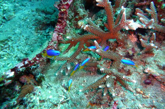 Die Tauchbedingungen waren - für uns - schon etwas schwierig, da wir bisher beim Tauchen nie so starken Welllengang hatten. Wir wurden teilweise ganz schön von der Strömung mitgezogen. Trotzdem hat Peter es geschafft, ein paar schöne Fotos zu machen.