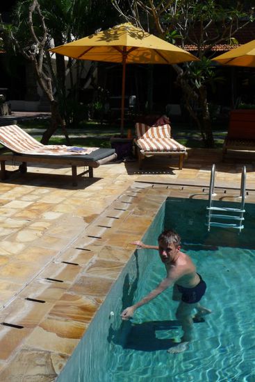 Es ist unglaublich, dass die ersten zwei Wochen schon um sind und wir morgen schon nach Lombok weiterreisen. Die Zeit auf Bali war sehr interessant und aufregend. Einiges würde ich im Nachhinein an dem Reiseablauf ändern, da mir Seminyak nicht wirklich gefallen hat und auch Padang Bai (bis auf den Tauchgang mit den Mantas) nicht übermäßig toll war. Stattdessen hätte ich lieber - wie schon mal erwähnt - mehr Zeit in Lovina und Ubud verbracht. Was Bali angeht, so sind die Strände hier wirklich nicht berauschend und selbst die kleinen Buchten lassen zu wünschen übrig. In den zwei Wochen waren wir nur einmal - abgesehen von den Tauchgängen - im Meer zum Schwimmen, was für uns schon sehr ungewöhnlich ist, da wir eigentlich keine Poolliebhaber sind. Aber das Bali keine schönen Strände hat, wusste ich schon vorher, so dass ich darüber auch nicht enttäuscht bin. Bali hat vielmehr zu bieten, als reinen Strandurlaub.