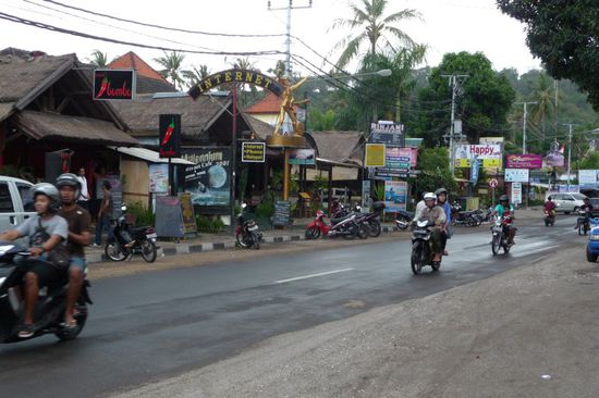 Danach mussten wir noch unbedingt Geld abheben, da es auf den Gili Inseln keinen Automaten gibt und unser Bargeld langsam rar wird. Dies stellte sich auch als kleine Herausforderung dar. Zwar fanden wir genügend Automaten, aber nirgends ein Maestro-Zeichen, dass wir auch mit unserer EC-Karte abheben können. Wir versuchten es dann mit der Kreditkarte, sind aber daran gescheitert, dass uns der Pin fehlt(?!). Da waren wir schon ein wenig verzweifelt. Neben dem Automaten war auch ein Internetcafé, so dass wir beschlossen erstmal im Internet nachzulesen, wo wir evtl. mit EC-Karte Geld abheben können. Die Lösung war eigentlich ganz einfach. Wir brauchten gar nicht auf das Maestro-Zeichen achten, an den Automaten funktionieren überall EC-Karten Wieder beruhigt und mit ausreichend Geld für die nächsten Tage versorgt, haben wir uns ein Taxi zurück zum Hotel genommen. Da wir nur 15.000 Rupiah (ca. 1,30€) für die Fahrt bezahlt haben, ist es gar nicht so schlimm, dass wir so weit außerhalb sind. Die Fahrt können wir uns gerade noch so leisten