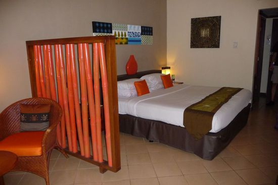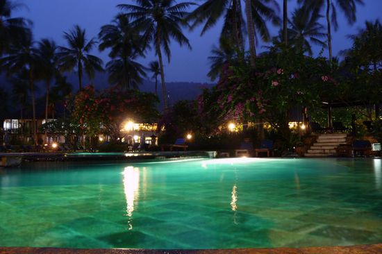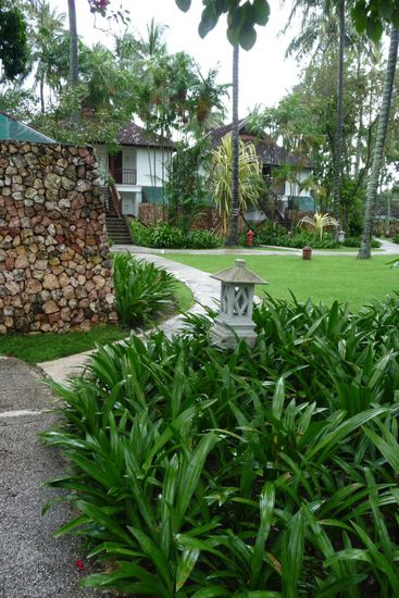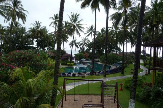 Wir sollten - laut Reiseprogramm der Tauchschule - im Senggigi Beach Club Hotel unterkommen. Unser Fahrer jedoch hat uns am Sunset House abgesetzt, wo für uns ein Zimmer reserviert war. Eigentlich reserviert war, denn es gab wohl irgendwelche Probleme, so dass das Hotel kein Zimmer für uns hatte. Eine Mitarbeiterin aus dem Hotel teilte mir jedoch mit, dass wir ein Upgrade auf ein anderes Hotel - Holiday Resort Lombok - bekommen und die uns gleich dort hinbringen. Da war ich ja schon leicht genervt, zumal das neue Hotel 5km vom Zentrum entfernt ist. Aber was bleibt uns anderes übrig? Die Mitarbeiterin hat uns persönlich zu dem Hotel gebracht und uns dann wieder zurück in die "Stadt" mitgenommen, da wir etwas Essen gehen wollten. Unterwegs fing es dann schon wieder an zu regnen, so dass meine Laune tief im Keller war. Wer hat uns eigentlich dieses Wetter gewünscht???