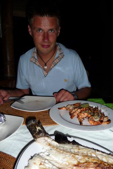 Den restlichen Nachmittag haben wir dann auf unserer Terrasse mit Fotos gucken verbracht, bevor wir dann abends auf Futtersuche gegangen sind. Heute haben wir uns für frischen Fisch und Garnelen direkt vom Grill entschieden. Wir haben für das Essen (Fisch, Garnelen, Salatbuffet und Folienkartoffeln) ca. 18 € für uns beide bezahlt mit Getränken (Bier, Wasser und Wein) waren es dann ca. 26 €.