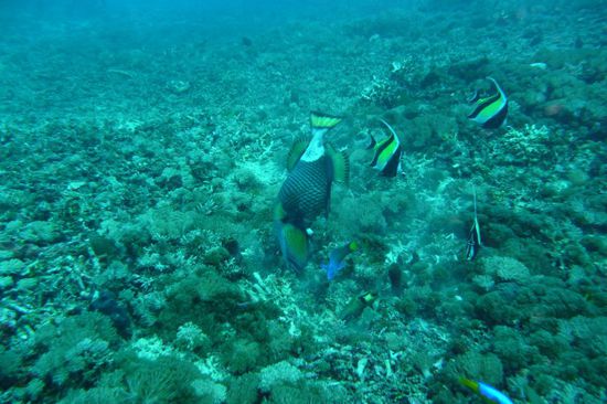 Heute haben wir - wie schon angekündigt - eine kleine Tauchpause eingelegt und sind erst nachmittags tauchen gegangen. Stattdessen haben wir etwas ausgeschlafen, in Ruhe gefrühstückt und uns dann an den Strand gelegt.