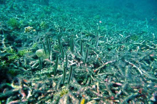 Für mich war es sehr gut, dass wir nicht so tief getaucht sind, da ich - durch meine Erkältung - Probleme mit dem Druckausgleich hatte und jeden Meter schmerzlich in meinen Nasennebenhöhlen gemerkt habe. Ich habe den zweiten Tauchgang dann auch gleich abgesagt. Zwar habe ich meinen Tauschschein letztes Jahr auch mit einer Erkältung gemacht, aber in diesem Jahr habe ich schon genügend Tauchgänge hinter mir, um auf diesen einen verzichten zu können.