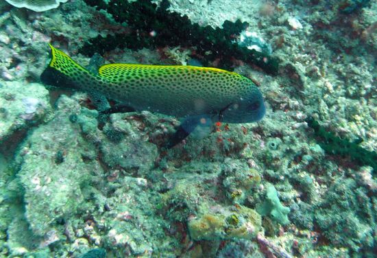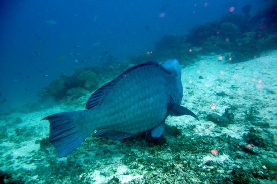 Als Peter dann um 14 Uhr tauchen gegangen ist, habe ich die Zeit zum Sonnen genutzt Natürlich - wie sollte es auch anders sein - war der Tauchgang super und er hat wieder eine ganze Horde Büffelkopfpapageifische gesehen. Ich bin froh, dass ich die Fische letzte Woche auch schon gesehen habe, sonst wäre ich ein wenig neidisch