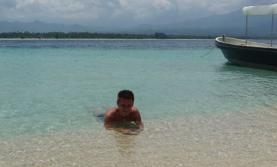 Dieses Boot hat sich übrigens zwischendurch mal selbständig gemacht und ist uns im Wasser entgegen gekommen. Peter hat das aber sofort gesehen und reagiert, in dem er das Boot wieder an den Strand gezogen hat, wo auch schon der Bootsführer angerannt kam, um es wieder festzumachen. Ich hätte gerne ein Foto davon gemacht, wie Peter das Boot zieht, aber leider konnte ich - wegen dem eingeklemmten Nerv - nicht so schnell aus dem Wasser laufen, um meine Kamera zu holen.