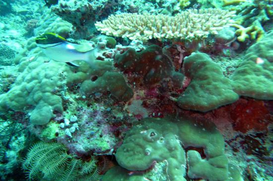 Der Tauchgang zum Air Slope war wohl ganz okay. Peter hat wieder eine Horde Büffelkopfpapageifische und viele bunte Korallen gesehen. Ich konnte seinen Erzählungen aber keine echte Begeisterung entnehmen. Das liegt wohl auch daran, dass man sich nach so vielen Tauchgängen irgendwie dran satt gesehen hat.