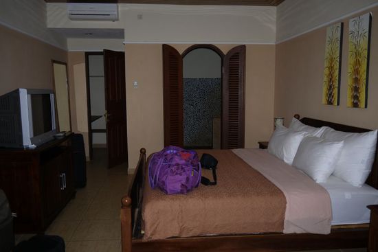 Als wir dann so gegen 18 Uhr in unserem Hotel "Sunset House" angekommen sind, haben wir nur schnell die Koffer im Zimmer abgestellt, um noch den Sonnenuntergang am Strand bewundern zu können. Das Hotel - vor allem Zimmer und Bad (endlich kein Salzwasser mehr zum Duschen ) - gefällt uns sehr gut und wir freuen uns, dass wir die letzten zwei Nächte noch ein wenig "luxuriös" verbringen können