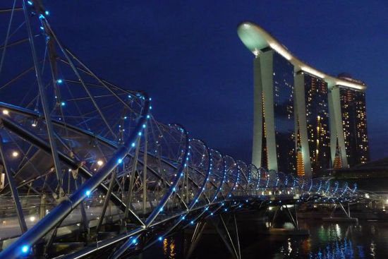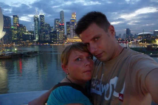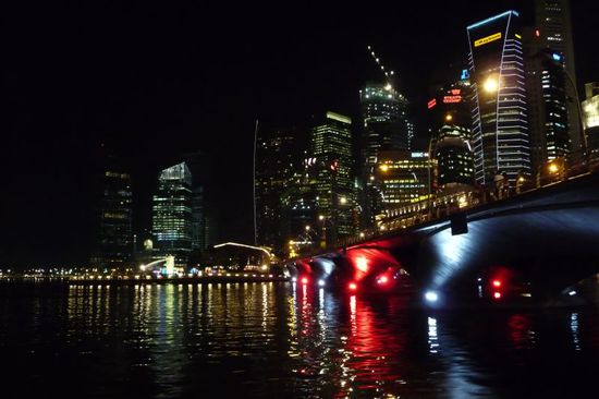 Vorbei am Singapore Flyer und an der Formel 1 Strecke haben wir Rast am Theater (Esplanade) gemacht, um die Skyline bei Nacht zu genießen.